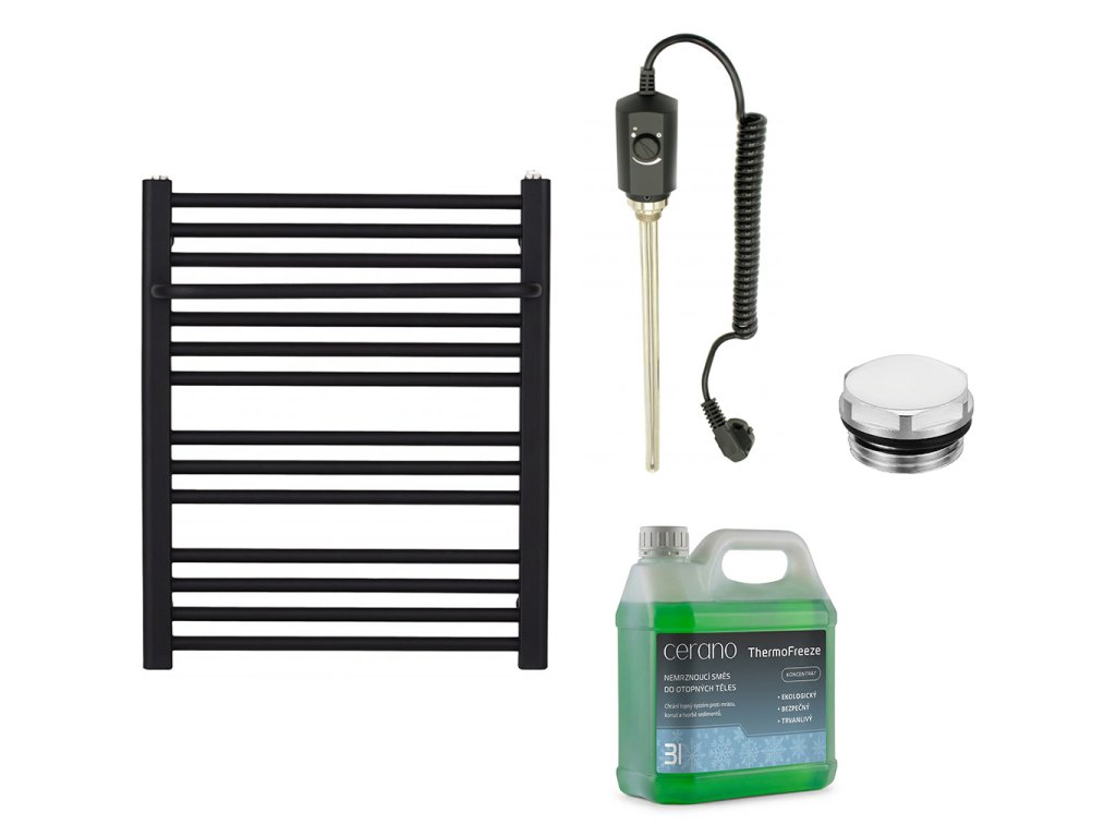 CERANO - Kúpeľňový elektrický radiátorový set Antonio - 300W - čierna matná - 660x550mm