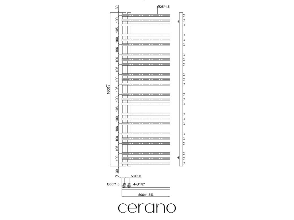 Štandardné pripojenie radiátora je 1/2", čo zaisťuje kompatibilitu s ventilmi a prípojnými sadami Cerano, aj od iných výrobcov. Uistite sa, že všetky súčasti zodpovedajú tomuto priemeru, aby bola zaistená bezpečná a efektívna prevádzka.
