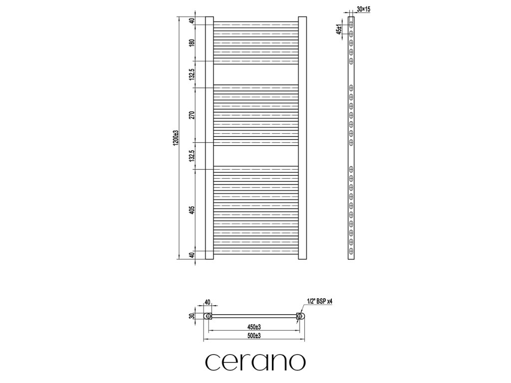 Štandardné pripojenie radiátora je 1/2", čo zaisťuje kompatibilitu s ventilmi a prípojnými sadami Cerano, aj od iných výrobcov. Uistite sa, že všetky súčasti zodpovedajú tomuto priemeru, aby bola zaistená bezpečná a efektívna prevádzka.