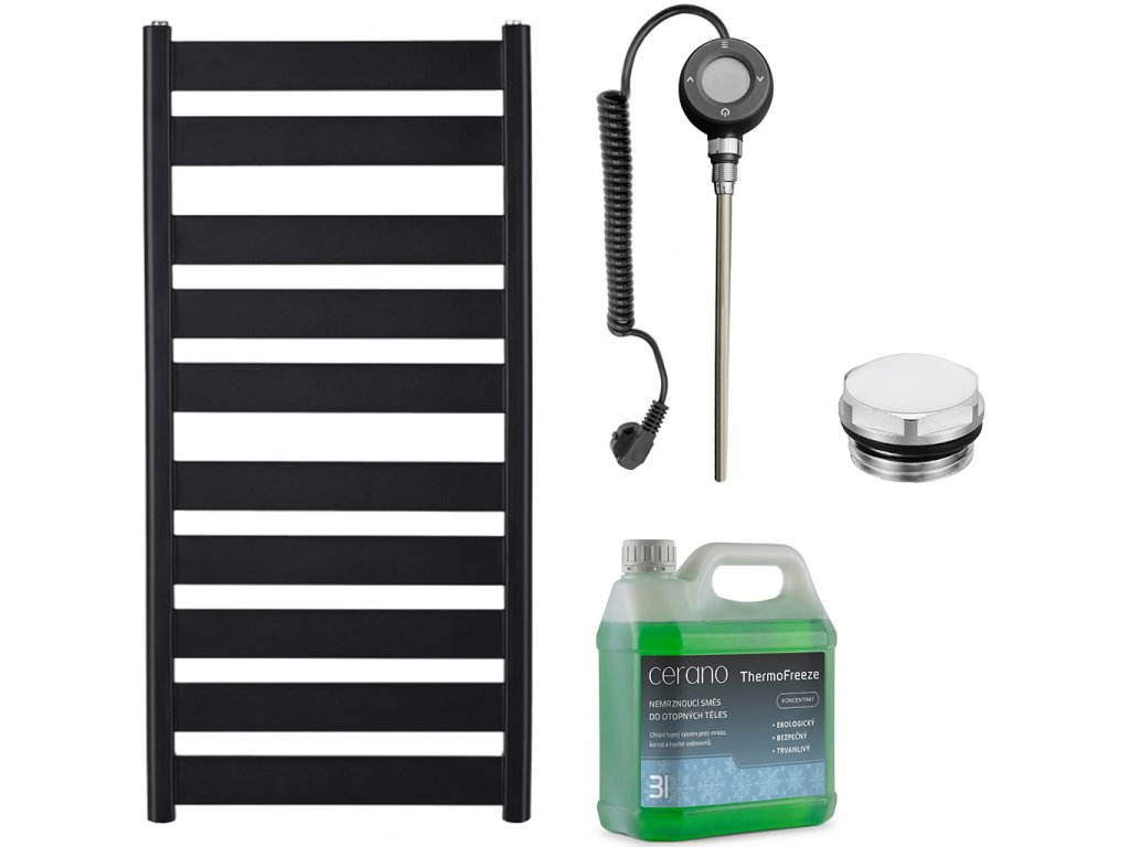 CERANO - Kúpeľňový elektrický radiátorový set Marco - WIFI - 600W - čierna matná - 1125x550 mm