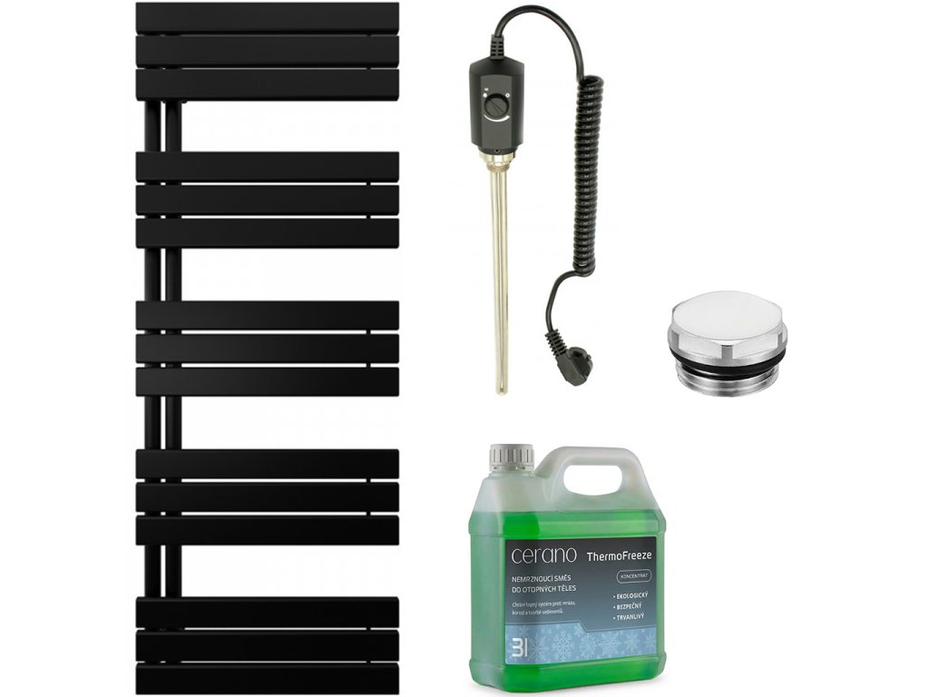 CERANO - Kúpeľňový elektrický radiátorový set Theo - L/P - 900W - čierna matná - 1600x500 mm