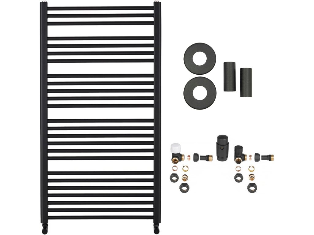 CERANO - Kúpeľňový radiátorový set Alberto - ústredné vykurovanie - bočné pripojenie - 716W - čierna matná - 1180x650 mm