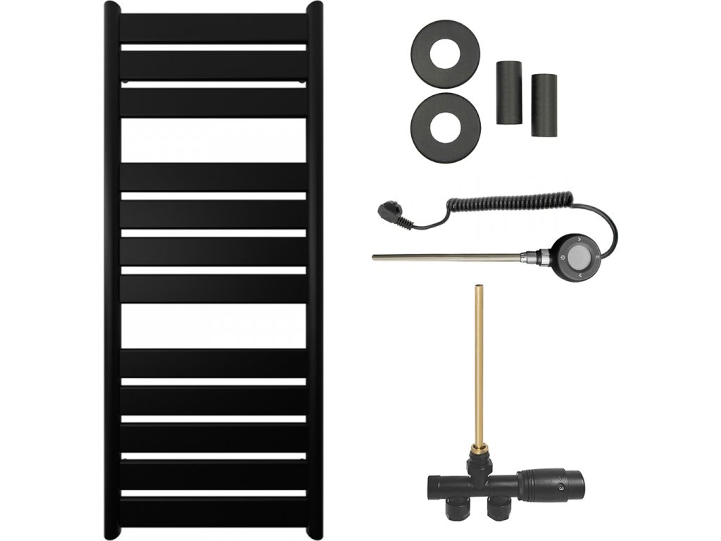 CERANO - Kúpeľňový radiátorový set Arturo - kombinované vykurovanie, wifi tyč - bočné jednobodové pripojenie - 644W - čierna matná - 1200x500 mm