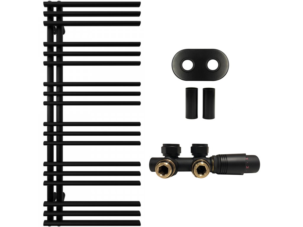 CERANO - Kúpeľňový radiátorový set Burke - ústredné vykurovanie - asymetrické pripojenie 50 mm - 562W - čierna matná - 1200x500 mm