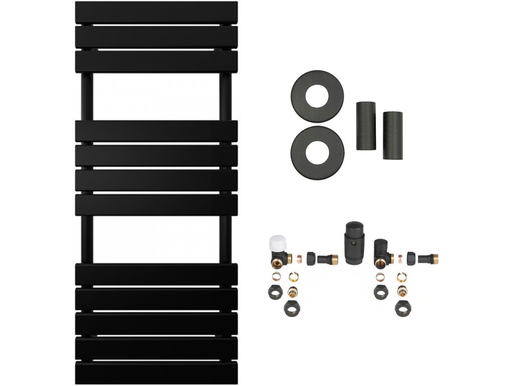 CERANO - Kúpeľňový radiátorový set Claude - ústredné vykurovanie - bočné pripojenie - 650W - čierna matná - 1200x500 mm