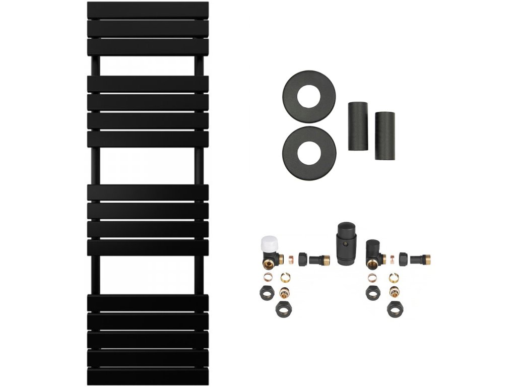 CERANO - Kúpeľňový radiátorový set Claude - ústredné vykurovanie - bočné pripojenie - 866W - čierna matná - 1600x500 mm