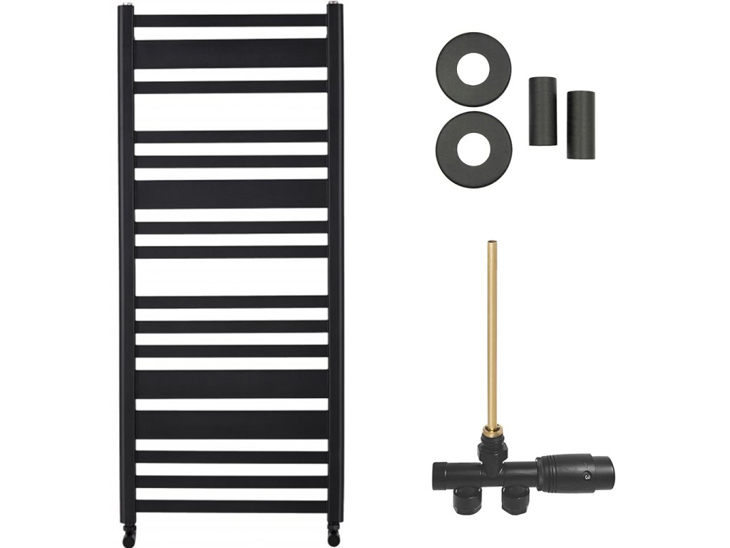 CERANO - Kúpeľňový radiátorový set Enrico - ústredné vykurovanie - bočné jednobodové pripojenie - 559W - čierna matná - 1210x550 mm
