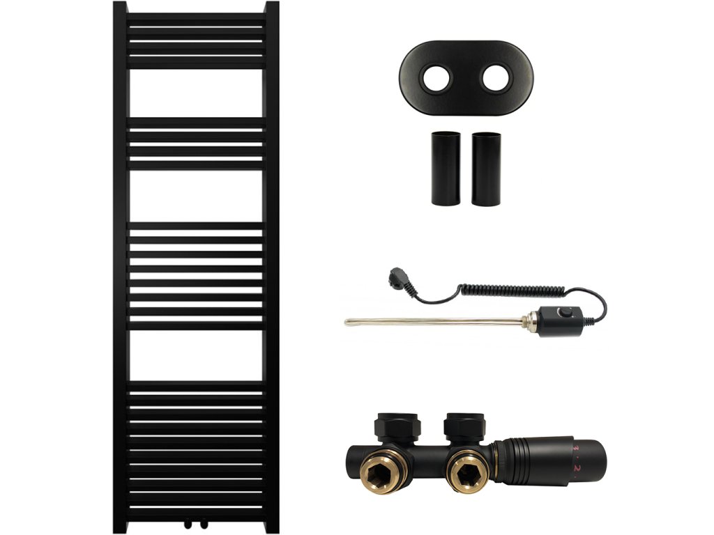 CERANO - Kúpeľňový radiátorový set Franko - kombinované vykurovanie, termo tyč - stredové pripojenie 50 mm - 514W - čierna matná - 1600x500 mm