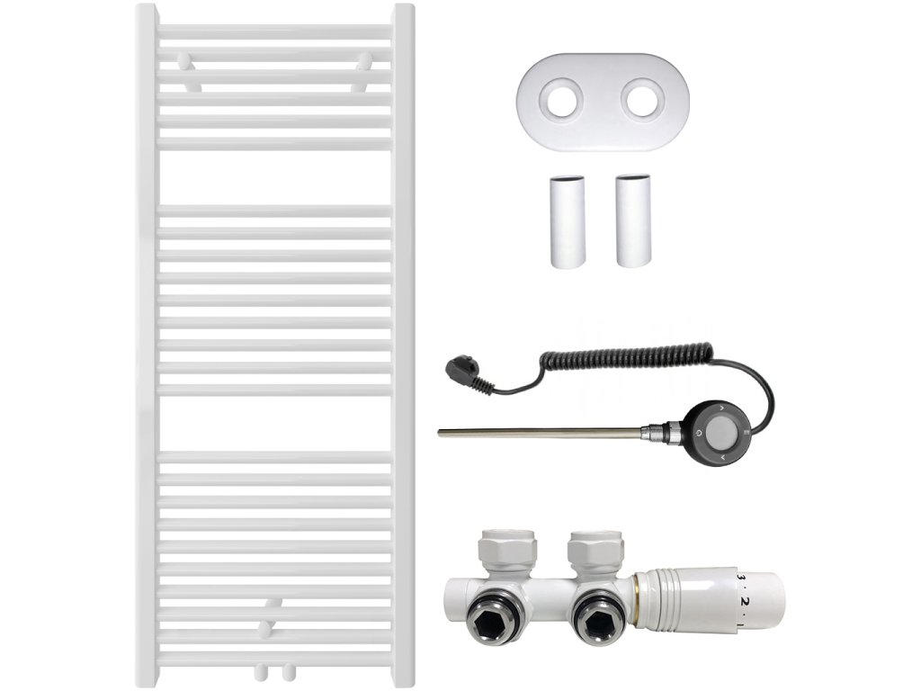 CERANO - Kúpeľňový radiátorový set Lincoln - kombinované vykurovanie, wifi tyč - stredové pripojenie 50 mm - 366W - biela lesklá - 1200x500 mm