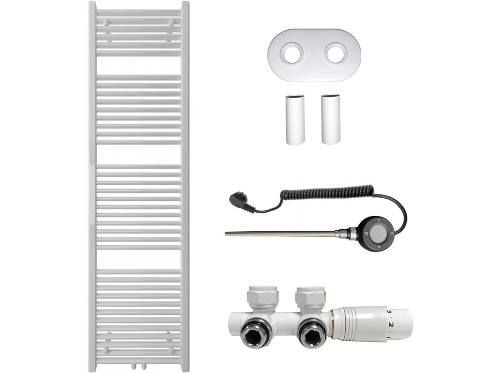 CERANO - Kúpeľňový radiátorový set Lincoln - kombinované vykurovanie, wifi tyč - stredové pripojenie 50 mm - 559W - biela lesklá - 1800x500 mm