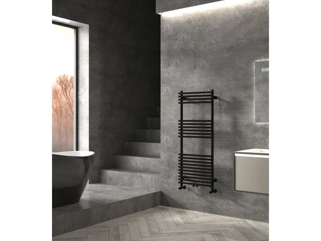 CERANO - Kúpeľňový radiátorový set Luigi - kombinované vykurovanie, wifi tyč - stredové pripojenie 50 mm - 545W - čierna matná - 1200x500 mm