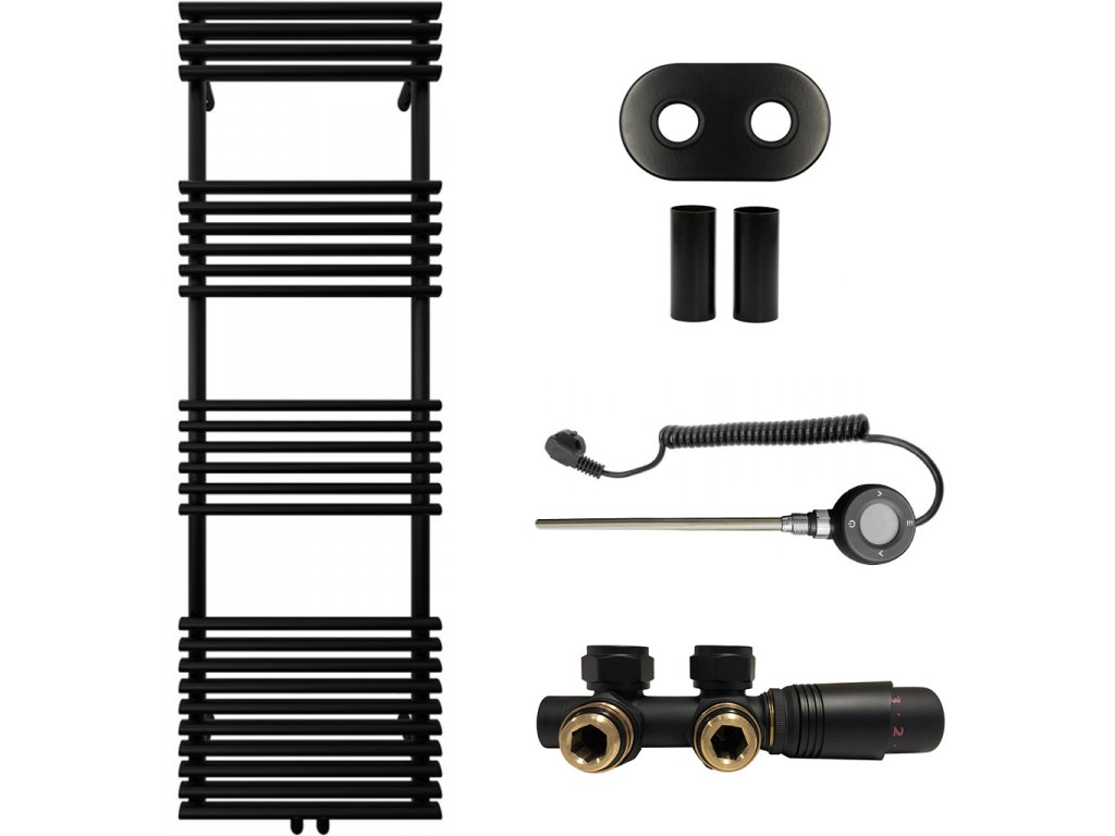 CERANO - Kúpeľňový radiátorový set Luigi - kombinované vykurovanie, wifi tyč - stredové pripojenie 50 mm - 713W - čierna matná - 1600x500 mm