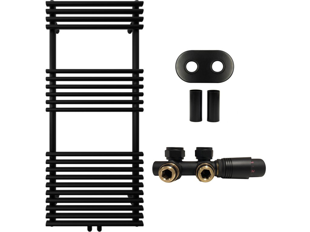 CERANO - Kúpeľňový radiátorový set Luigi - ústredné vykurovanie - stredové pripojenie 50 mm - 545W - čierna matná - 1200x500 mm