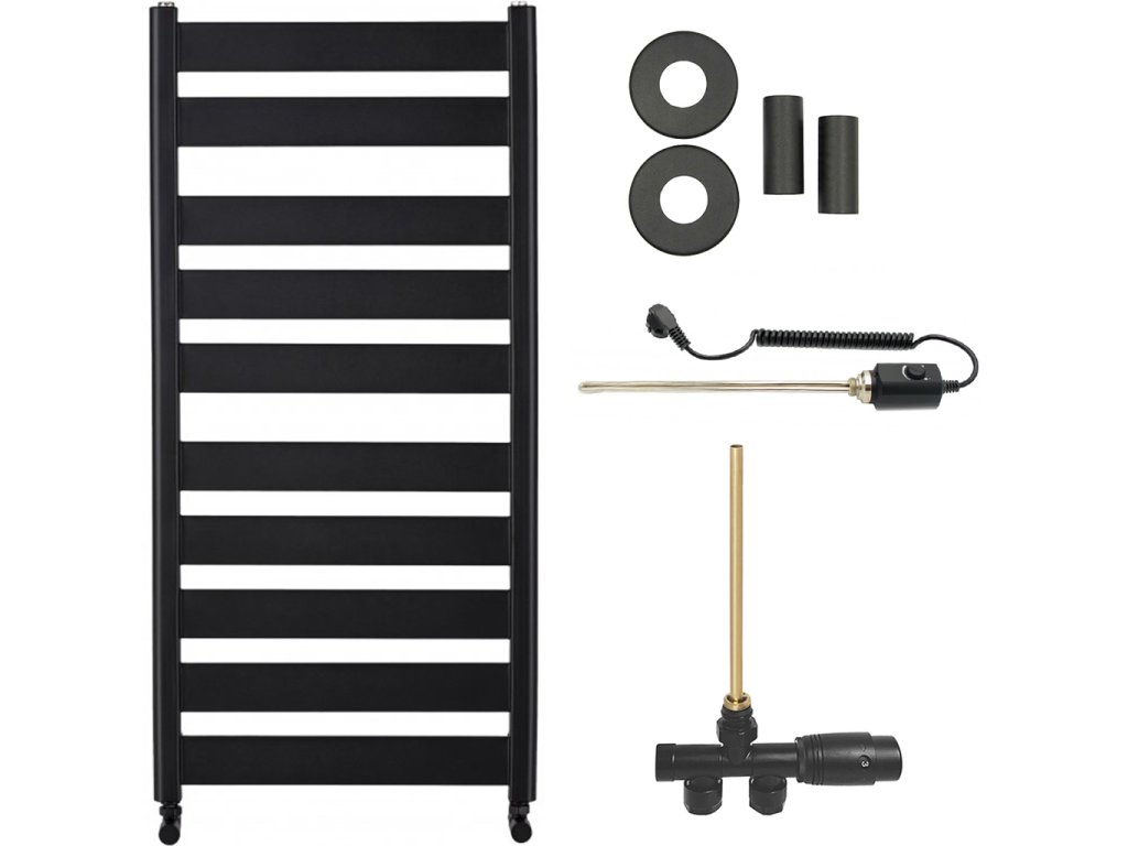 CERANO - Kúpeľňový radiátorový set Marco - kombinované vykurovanie, termo tyč - bočné jednobodové pripojenie - 816W - čierna matná - 1125x550 mm