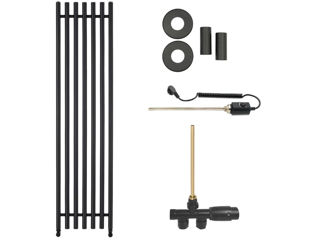CERANO - Kúpeľňový radiátorový set Valerio - kombinované vykurovanie, termo tyč - bočné jednobodové pripojenie - 872W - čierna matná - 1560x390 mm
