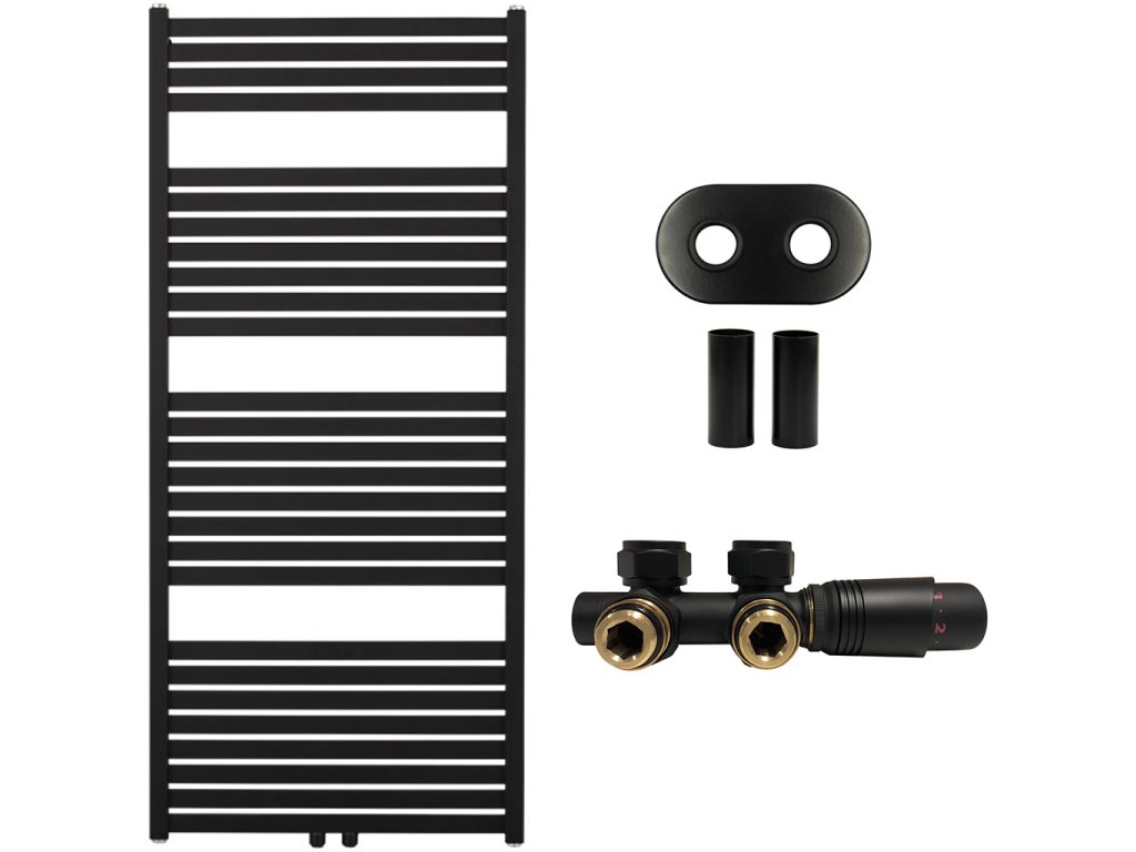 CERANO - Kúpeľňový radiátorový set Vincenzo - ústredné vykurovanie - stredové pripojenie 50 mm - 600W - čierna matná - 1330x600 mm