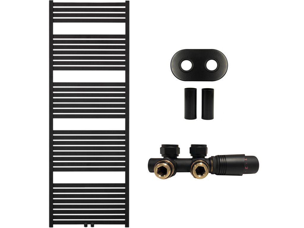 CERANO - Kúpeľňový radiátorový set Vincenzo - ústredné vykurovanie - stredové pripojenie 50 mm - 800W - čierna matná - 1690x600 mm