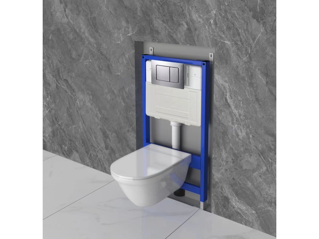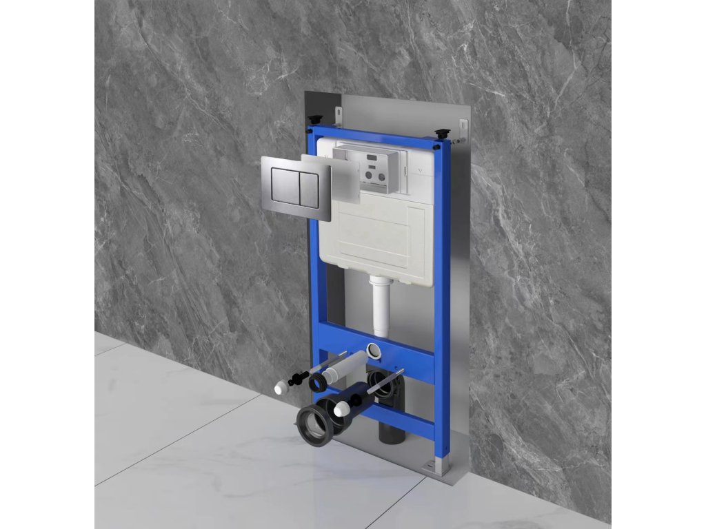 - Modul pre závesné WC určený na montáž do stien zo sadrokartónu, ktorý poskytuje pevné a stabilné uchytenie, pričom všetky inštalačné komponenty sú skryté a chránené.
