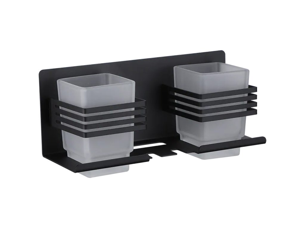 CERANO - Nástenný/Samolepiaci držiak na zubné kefky a kelímky Lero - čierna matná