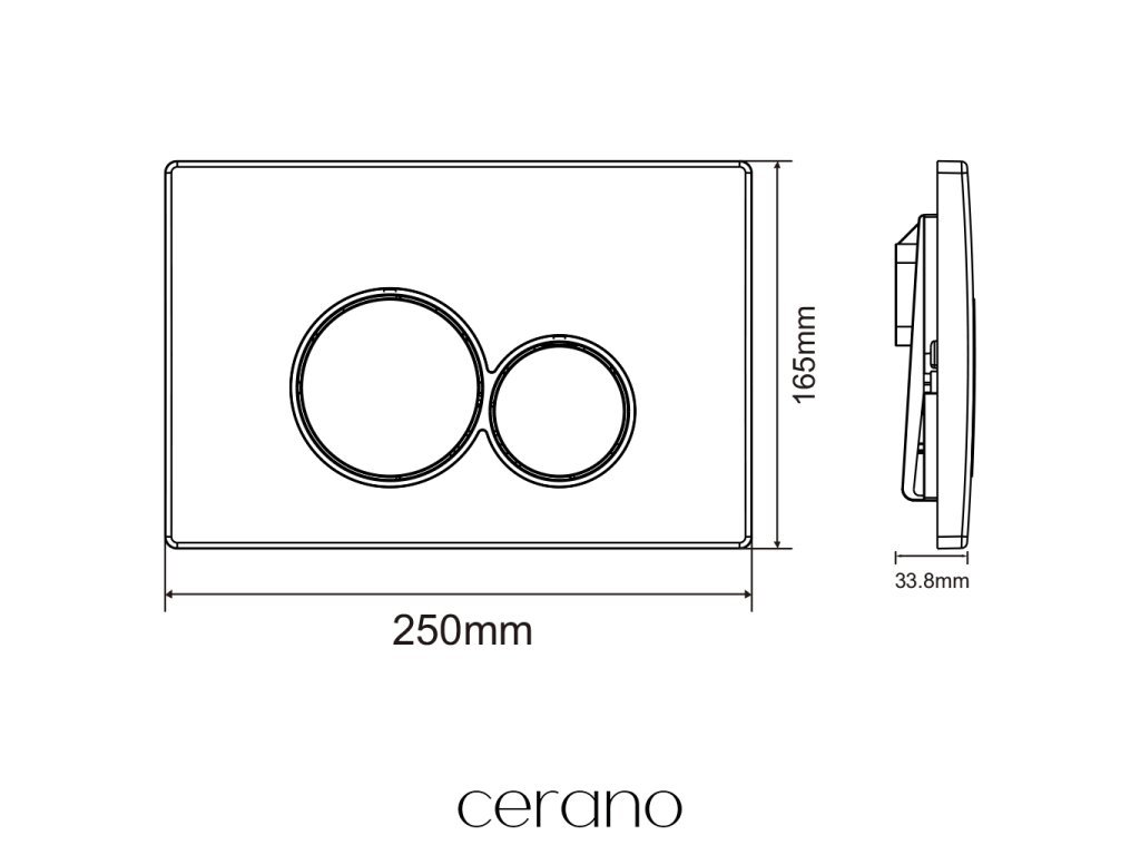 Všetky WC tlačidlá Cerano sú plne kompatibilné s WC modulmi Lite značky Cerano, čo vám poskytuje úplnú voľnosť pri výbere dizajnu a istotu jednoduchej inštalácie aj dlhodobo spoľahlivej prevádzky.
