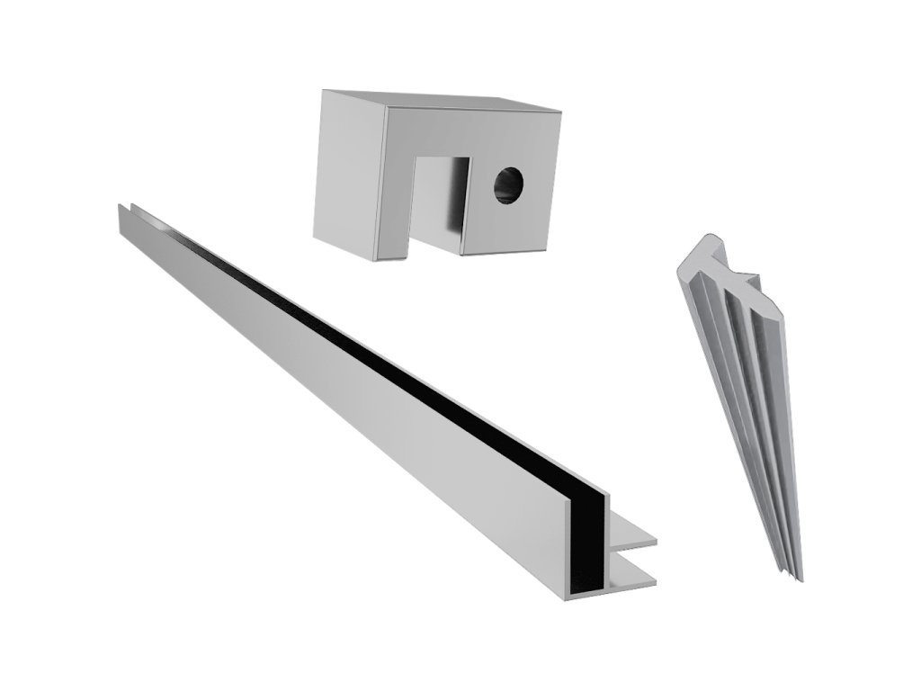 Kovanie a profily – kvalitné kovanie z hliníka, ktoré slúži na bezpečnú montáž skiel. Profily sú navrhnuté tak, aby perfektne lícovali s povrchmi a vytvárali čistý vzhľad.