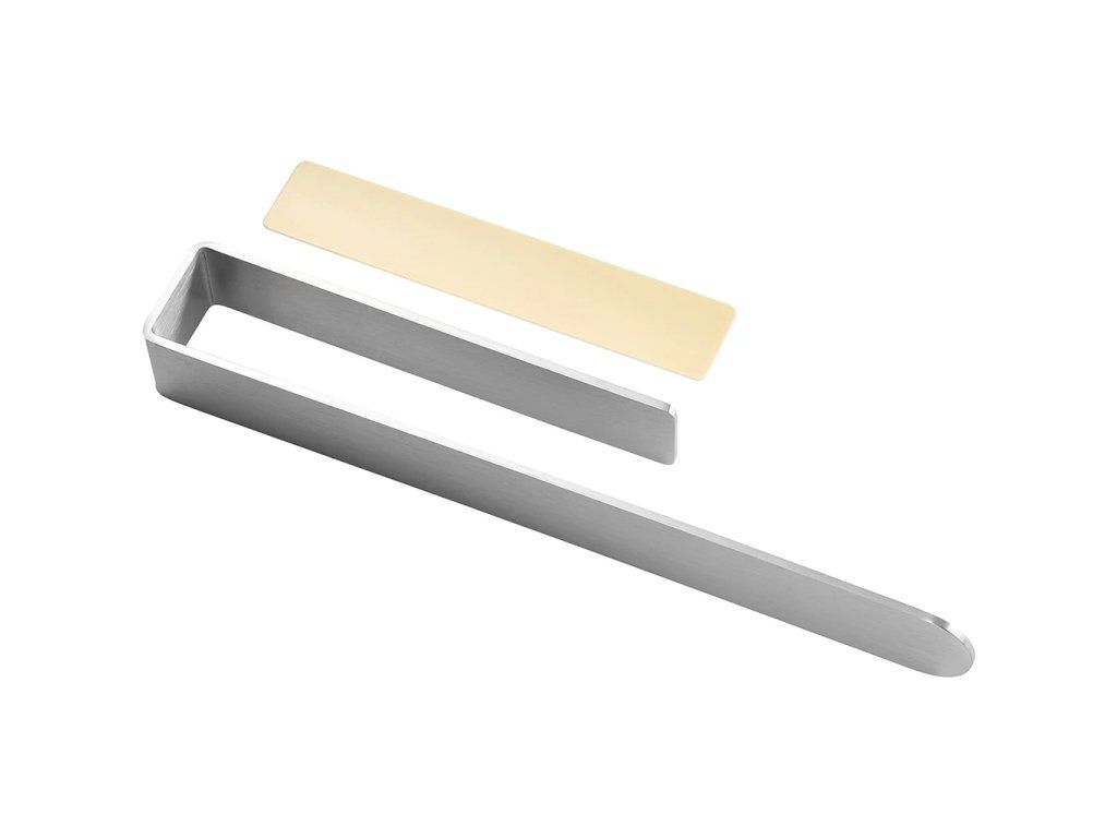 Predná strana disponuje dlhým ramenom, ktoré slúži na umiestnenie uterákov. Toto rameno je pevne upevnené k stene pomocou obojstranne lepiacej vložky, ktorá je diskrétne umiestnená na zadnej strane kratšieho ramena. Jej dokonalá priľnavosť k povrchu steny zaručuje, že držiak bude maximálne stabilný a unesie aj ťažšie tkaniny. Montážne komponenty sú súčasťou balenia.