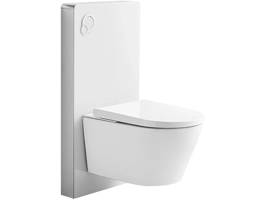 - Modul pre závesné WC určený na montáž do stien zo sadrokartónu, ktorý poskytuje pevné a stabilné uchytenie, pričom všetky inštalačné komponenty sú skryté a chránené.