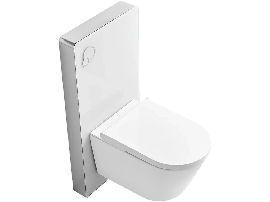 - Po inštalácii modulu a obložení sadrokartónom zostávajú všetky technické komponenty skryté, čo vytvára čistý a moderný vzhľad kúpeľne. To tiež uľahčuje údržbu a upratovanie pod WC.