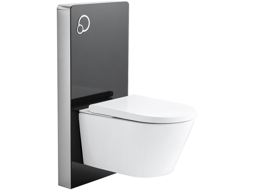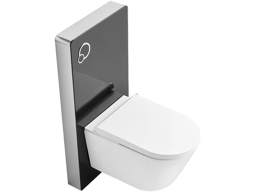 Modul vám uľahčí inštaláciu závesnej toalety. Inštalácia hotového modulu je jednoduchá a rýchla. Rám je vyrobený z hliníka a predný panel je vyrobený z 8 mm hrubého tvrdeného skla (ESG). Vstavaná nádržka s tlačidlami pre veľké a malé spláchnutie (z výroby nastavte 3/6 l - množstvo vody je možné nastaviť medzi 2,4 a 3,5 litrami / 4,8 a 7,4) má odolnú izoláciu proti kondenzácii. Splachovanie sa ľahko aktivuje tlačidlami na paneli. Povrch sanitárneho modulu je neporézny, ľahko sa čistí a je dokonale hygienický.