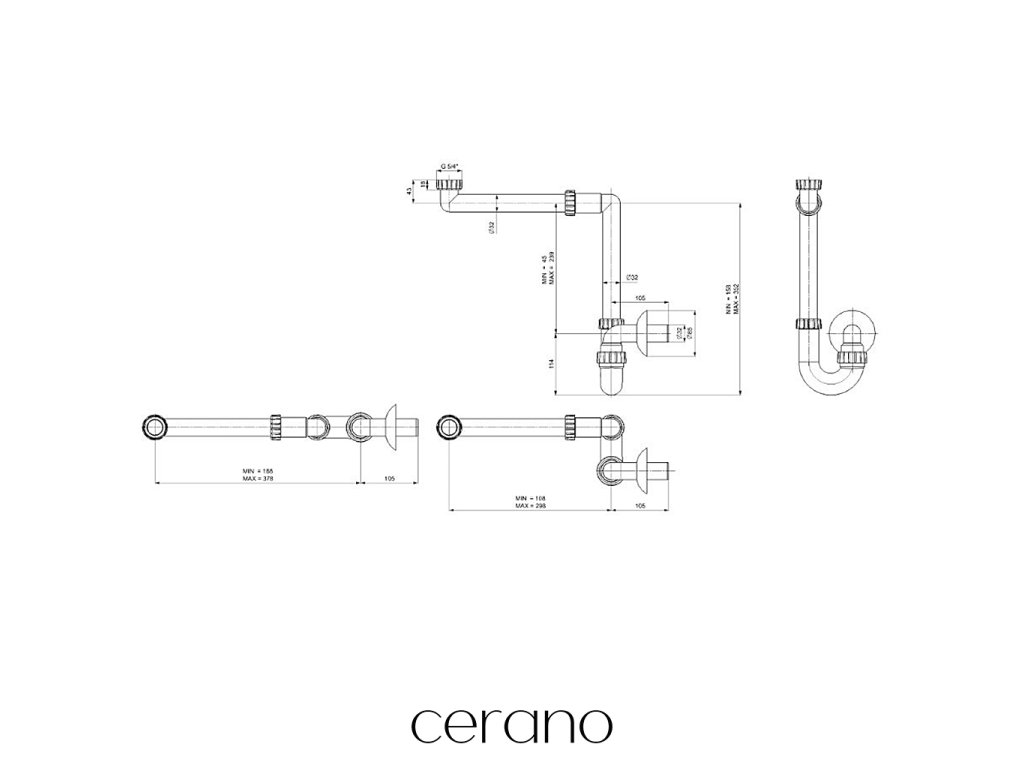 CERANO - Sifón umývadlový/nábytkový, miestošetriaci - 5/4" - DN32/250-700 mm - biela