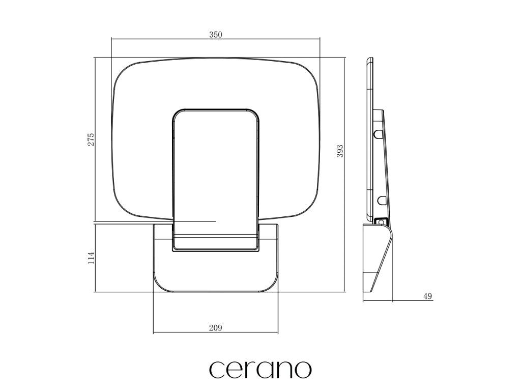 CERANO - Sklopné sedátko do sprchového kúta Oregon - čierna lesklá - 39,3x35 cm