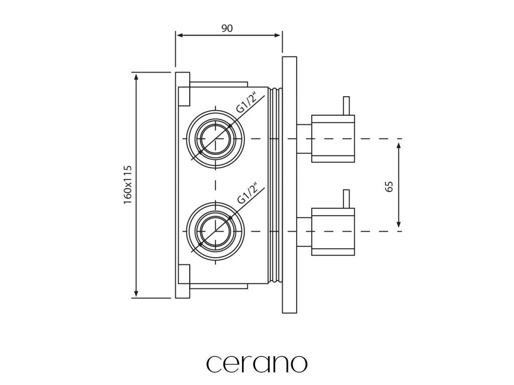 CERANO - Sprchová podomietková súprava Gina - termostatická - box - grafit/gun metal