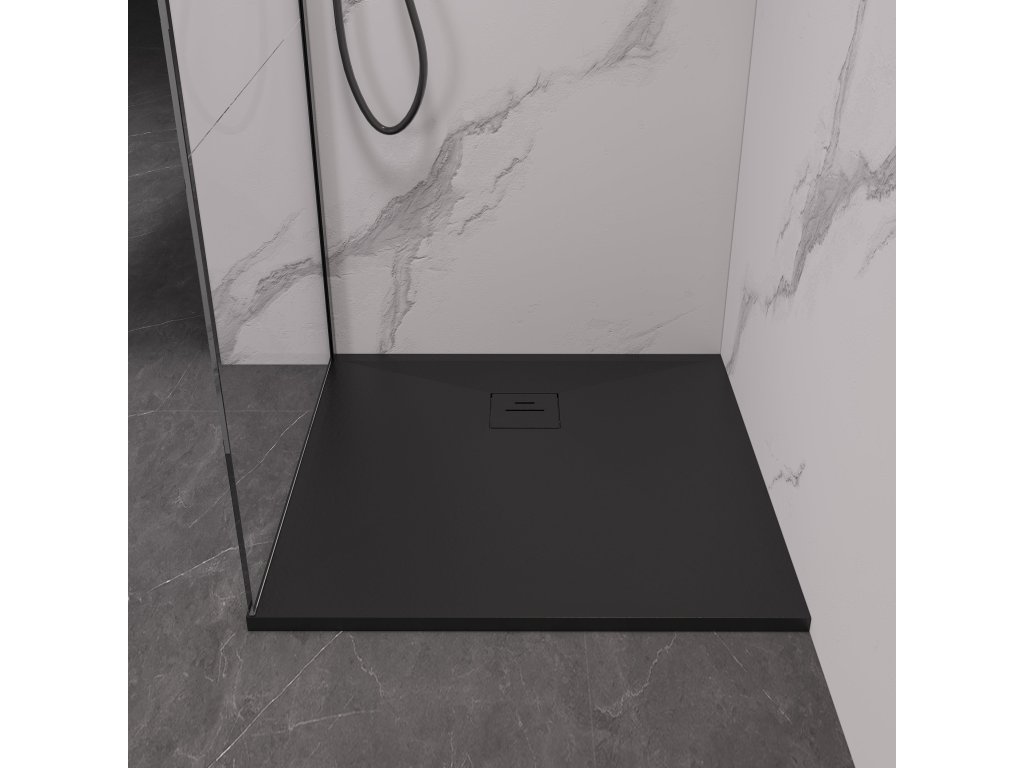 CERANO - Sprchová vanička štvorcová Pablo - SMC/minerálny kompozit - štruktúrovaná čierna matná - 80x80 cm