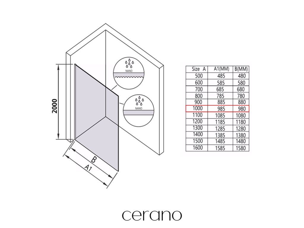 V rámci tejto série ponúkame širokú škálu rozmerov , aby sme uspokojili rôzne potreby našich zákazníkov. Všetky sprchové kúty, dvere a zásteny značky Cerano sú plne kompatibilné so sprchovými vaničkami Cerano v rovnakých rozmeroch, čo zaisťuje bezproblémovú inštaláciu a dokonalé zladenie. Sprchovací kút je možné navyše inštalovať flexibilne – buď na zodpovedajúcu sprchovú vaničku , alebo priamo na podlahu podľa vašich preferencií a možností kúpeľne.