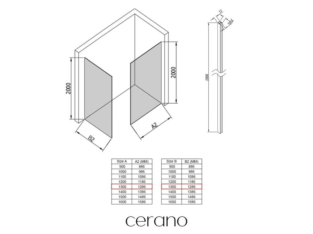 V rámci tejto série ponúkame širokú škálu rozmerov , aby sme uspokojili rôzne potreby našich zákazníkov. Všetky sprchové kúty, dvere a zásteny značky Cerano sú plne kompatibilné so sprchovými vaničkami Cerano v rovnakých rozmeroch, čo zaisťuje bezproblémovú inštaláciu a dokonalé zladenie. Sprchovací kút je možné navyše inštalovať flexibilne – buď na zodpovedajúcu sprchovú vaničku , alebo priamo na podlahu podľa vašich preferencií a možností kúpeľne.
