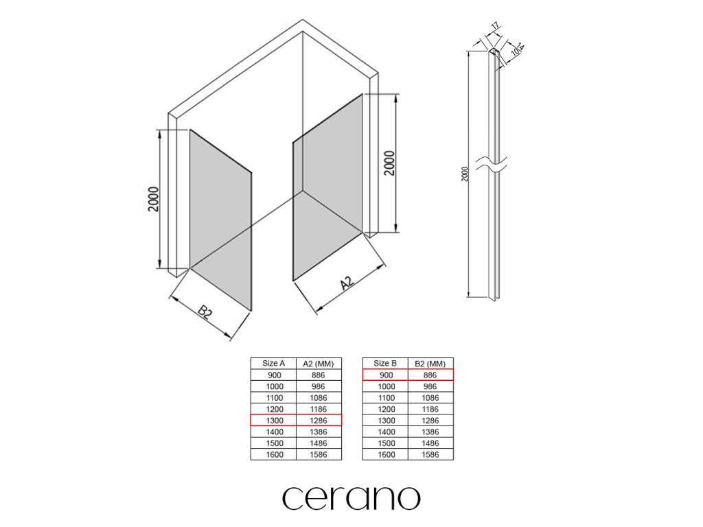 V rámci tejto série ponúkame širokú škálu rozmerov , aby sme uspokojili rôzne potreby našich zákazníkov. Všetky sprchové kúty, dvere a zásteny značky Cerano sú plne kompatibilné so sprchovými vaničkami Cerano v rovnakých rozmeroch, čo zaisťuje bezproblémovú inštaláciu a dokonalé zladenie. Sprchovací kút je možné navyše inštalovať flexibilne – buď na zodpovedajúcu sprchovú vaničku , alebo priamo na podlahu podľa vašich preferencií a možností kúpeľne.
