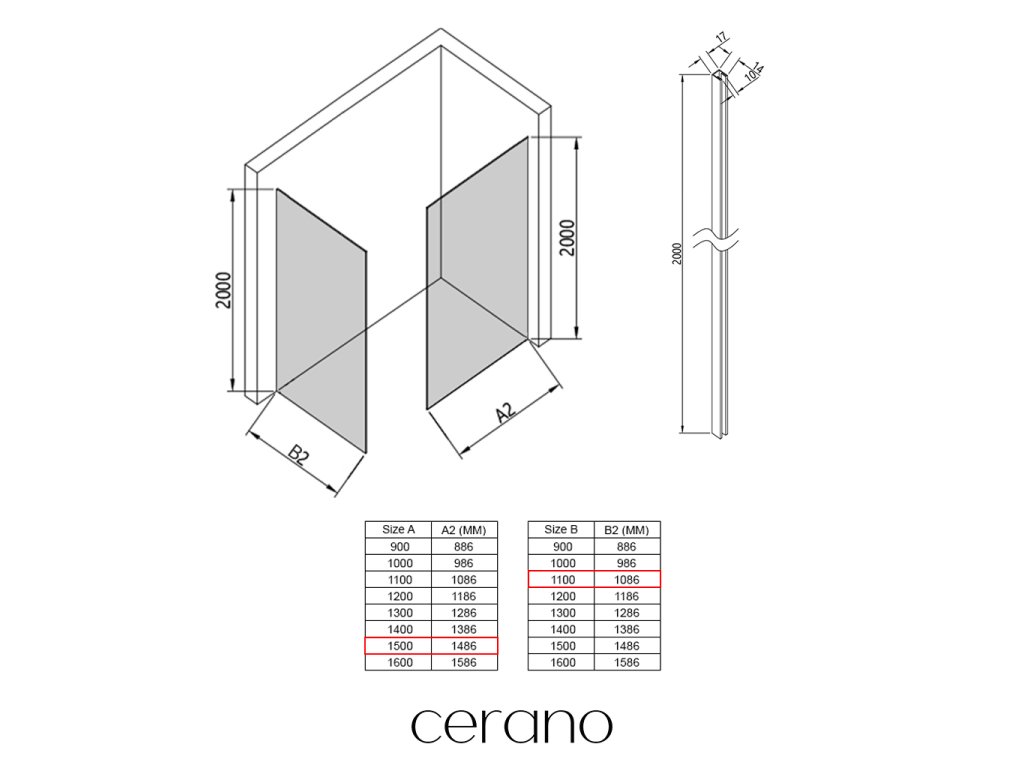 V rámci tejto série ponúkame širokú škálu rozmerov , aby sme uspokojili rôzne potreby našich zákazníkov. Všetky sprchové kúty, dvere a zásteny značky Cerano sú plne kompatibilné so sprchovými vaničkami Cerano v rovnakých rozmeroch, čo zaisťuje bezproblémovú inštaláciu a dokonalé zladenie. Sprchovací kút je možné navyše inštalovať flexibilne – buď na zodpovedajúcu sprchovú vaničku , alebo priamo na podlahu podľa vašich preferencií a možností kúpeľne.