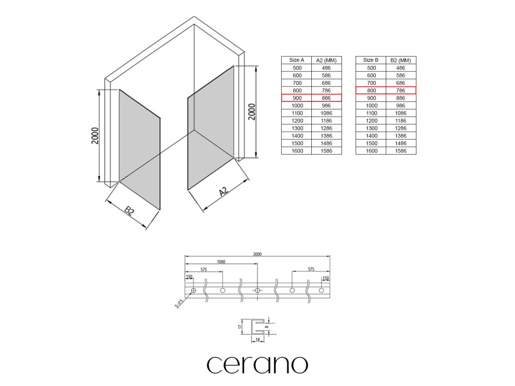 V rámci tejto série ponúkame širokú škálu rozmerov , aby sme uspokojili rôzne potreby našich zákazníkov. Všetky sprchové kúty, dvere a zásteny značky Cerano sú plne kompatibilné so sprchovými vaničkami Cerano v rovnakých rozmeroch, čo zaisťuje bezproblémovú inštaláciu a dokonalé zladenie. Sprchovací kút je možné navyše inštalovať flexibilne – buď na zodpovedajúcu sprchovú vaničku , alebo priamo na podlahu podľa vašich preferencií a možností kúpeľne.