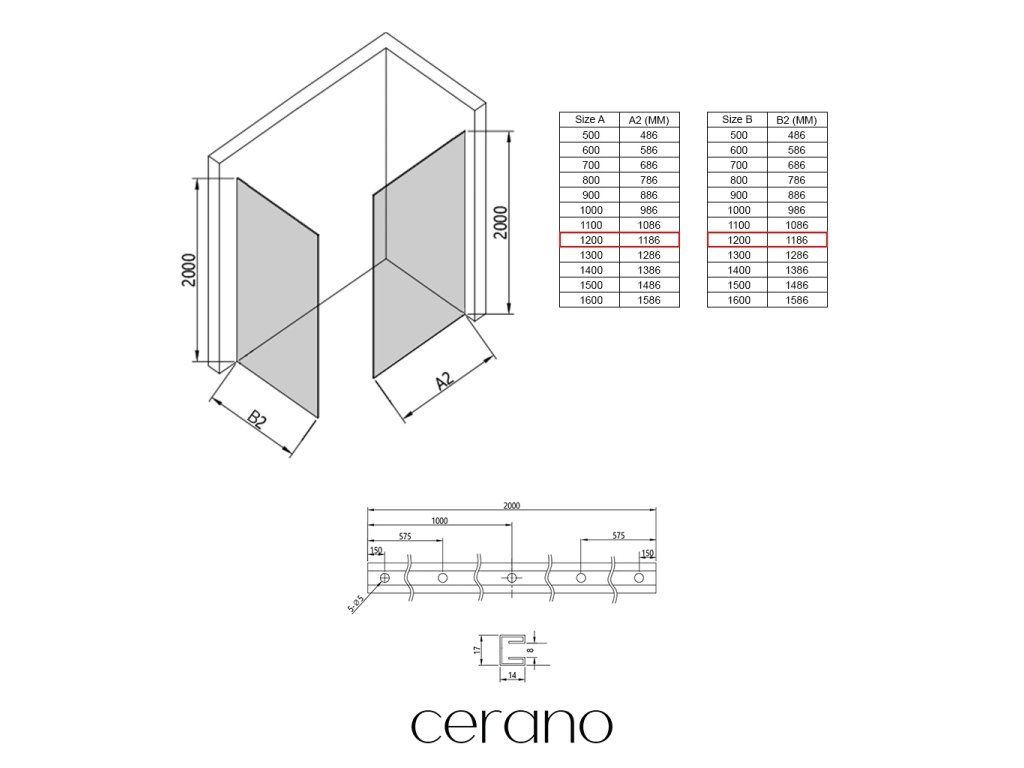 Niektoré zásteny značky Cerano je možné kombinovať s dverami z inej série, ale vo všeobecnosti to neodporúčame.