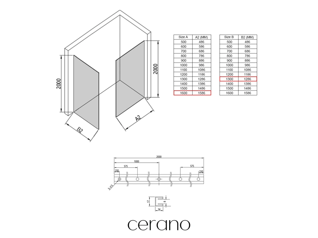 Niektoré zásteny značky Cerano je možné kombinovať s dverami z inej série, ale vo všeobecnosti to neodporúčame.
