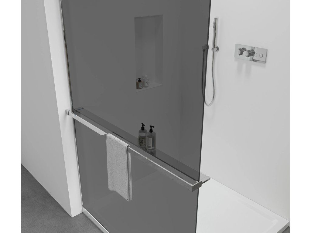 Inteligentné riešenie 2v1 pre sprchové zásteny. Z vonkajšej strany držiak na uteráky , zvnútra praktická polička na kozmetiku a drobnosti - všetko hneď po ruke. Vhodné pre sprchové zásteny s maximálnou hrúbkou skla 8 mm . Nastaviteľná šírka od 30 do 160 cm podľa typu zásteny. Úspora miesta, moderný vzhľad a praktické využitie v jednom.