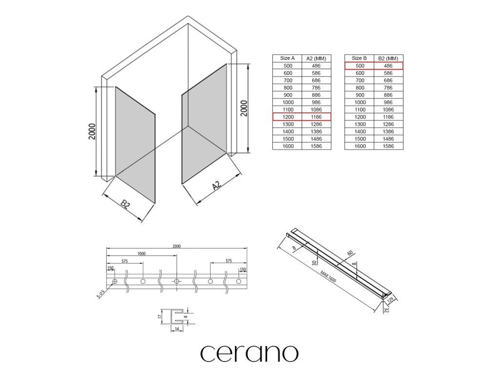 Niektoré zásteny značky Cerano je možné kombinovať s dverami z inej série, ale vo všeobecnosti to neodporúčame.