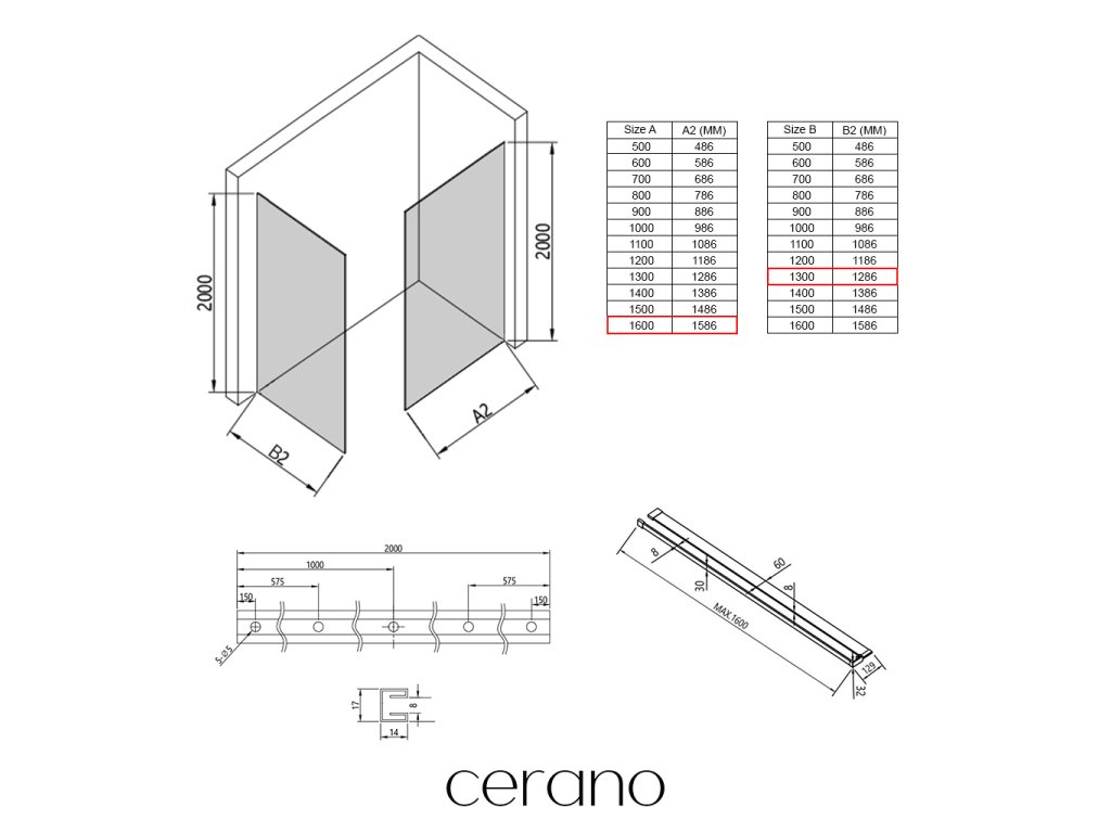 V rámci tejto série ponúkame širokú škálu rozmerov , aby sme uspokojili rôzne potreby našich zákazníkov. Všetky sprchové kúty, dvere a zásteny značky Cerano sú plne kompatibilné so sprchovými vaničkami Cerano v rovnakých rozmeroch, čo zaisťuje bezproblémovú inštaláciu a dokonalé zladenie. Sprchovací kút je možné navyše inštalovať flexibilne – buď na zodpovedajúcu sprchovú vaničku , alebo priamo na podlahu podľa vašich preferencií a možností kúpeľne.