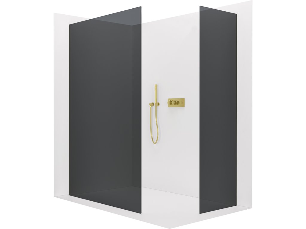 CERANO - Sprchová zástena Walk-in Crystal TL/P - 8 mm - bezvzperový systém - zlatá kartáčovaná, grafitové sklo - 150x130x200 cm
