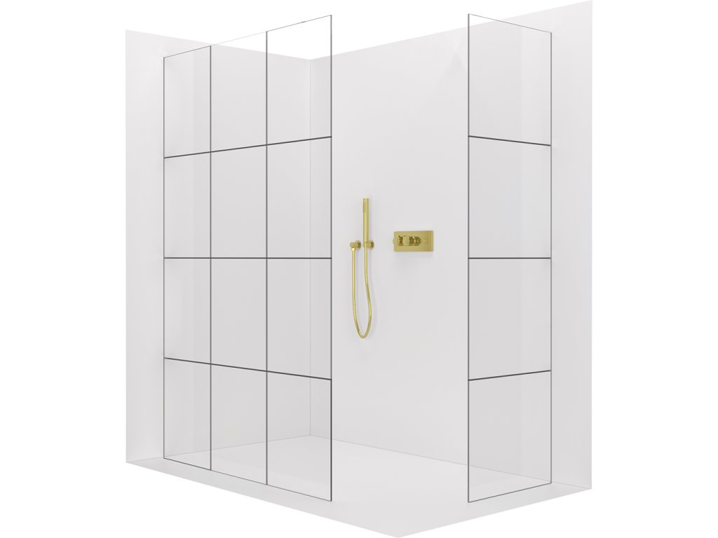 CERANO - Sprchová zástena Walk-in Crystal TL/P - 8 mm - bezvzperový systém - zlatá kartáčovaná, industriálne sklo - 120x90x200 cm