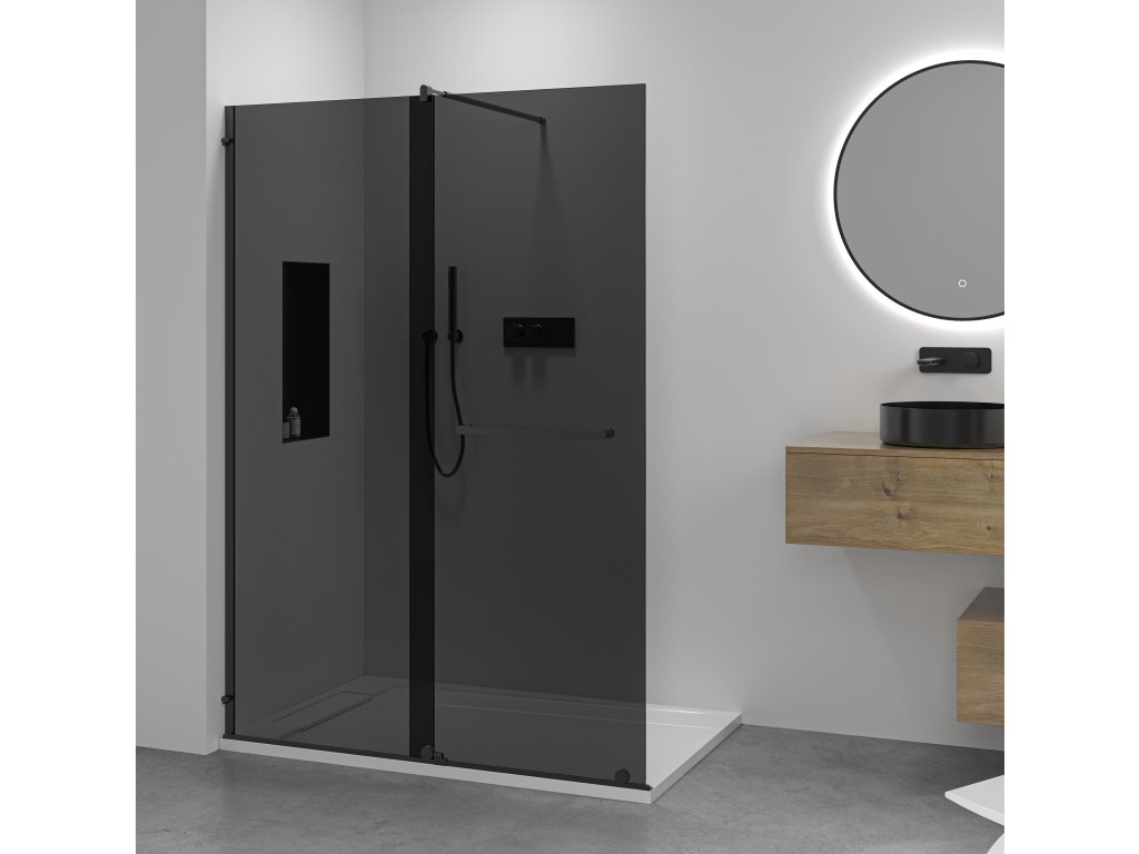 CERANO - Sprchová zástena Walk-in Medin Ľ/P - 8 mm - čierna matná, grafitové sklo - 150x195 cm - dvojdielna posuvná