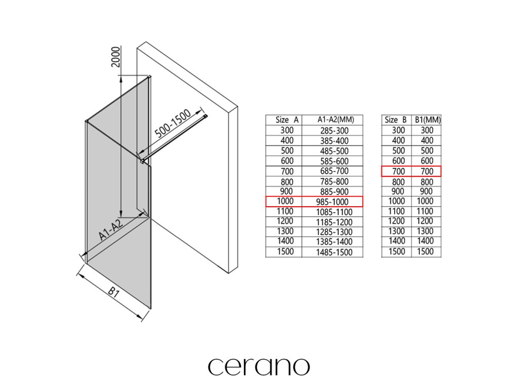 V rámci tejto série ponúkame širokú škálu rozmerov, aby sme uspokojili rôzne potreby našich zákazníkov. Všetky sprchové kúty, dvere a zásteny značky Cerano sú plne kompatibilné so sprchovými vaničkami Cerano v rovnakých rozmeroch, čo zaisťuje bezproblémovú inštaláciu a dokonalé zladenie. Sprchovací kút je možné navyše inštalovať flexibilne – buď na zodpovedajúcu sprchovú vaničku, alebo priamo na podlahu podľa vašich preferencií a možností kúpeľne.