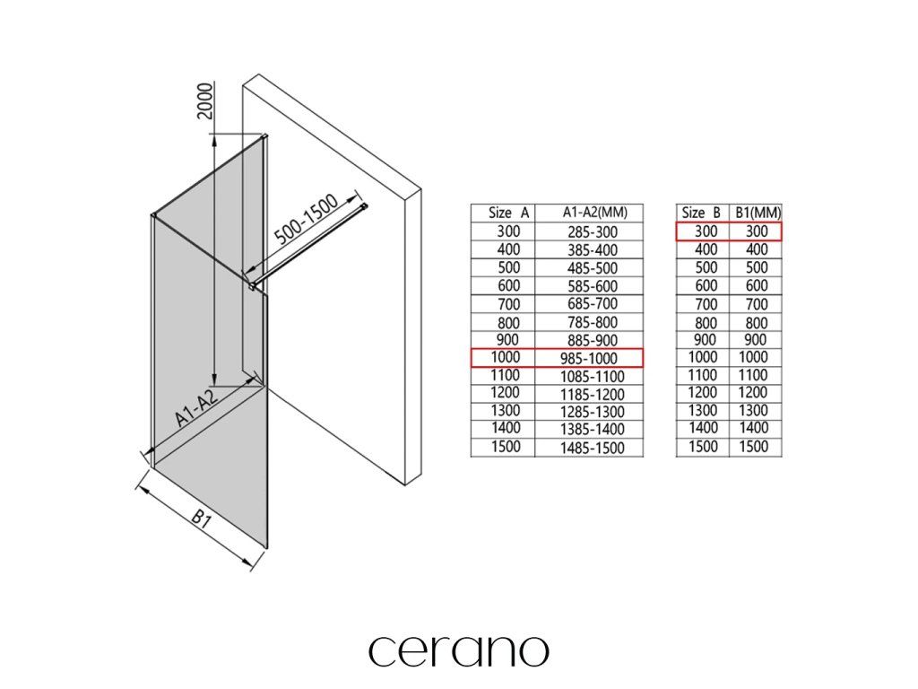 V rámci tejto série ponúkame širokú škálu rozmerov, aby sme uspokojili rôzne potreby našich zákazníkov. Všetky sprchové kúty, dvere a zásteny značky Cerano sú plne kompatibilné so sprchovými vaničkami Cerano v rovnakých rozmeroch, čo zaisťuje bezproblémovú inštaláciu a dokonalé zladenie. Sprchovací kút je možné navyše inštalovať flexibilne – buď na zodpovedajúcu sprchovú vaničku, alebo priamo na podlahu podľa vašich preferencií a možností kúpeľne.
