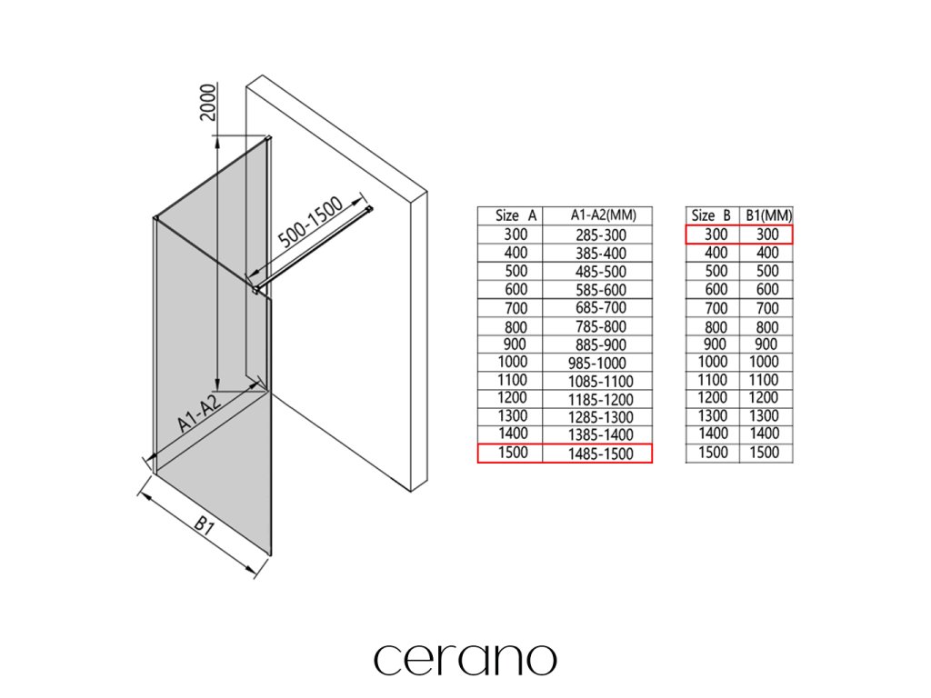 V rámci tejto série ponúkame širokú škálu rozmerov, aby sme uspokojili rôzne potreby našich zákazníkov. Všetky sprchové kúty, dvere a zásteny značky Cerano sú plne kompatibilné so sprchovými vaničkami Cerano v rovnakých rozmeroch, čo zaisťuje bezproblémovú inštaláciu a dokonalé zladenie. Sprchovací kút je možné navyše inštalovať flexibilne – buď na zodpovedajúcu sprchovú vaničku, alebo priamo na podlahu podľa vašich preferencií a možností kúpeľne.