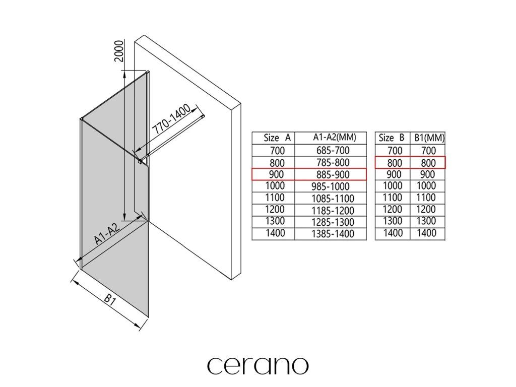 V rámci tejto série ponúkame širokú škálu rozmerov, aby sme uspokojili rôzne potreby našich zákazníkov. Všetky sprchové kúty, dvere a zásteny značky Cerano sú plne kompatibilné so sprchovými vaničkami Cerano v rovnakých rozmeroch, čo zaisťuje bezproblémovú inštaláciu a dokonalé zladenie. Sprchovací kút je možné navyše inštalovať flexibilne – buď na zodpovedajúcu sprchovú vaničku, alebo priamo na podlahu podľa vašich preferencií a možností kúpeľne.